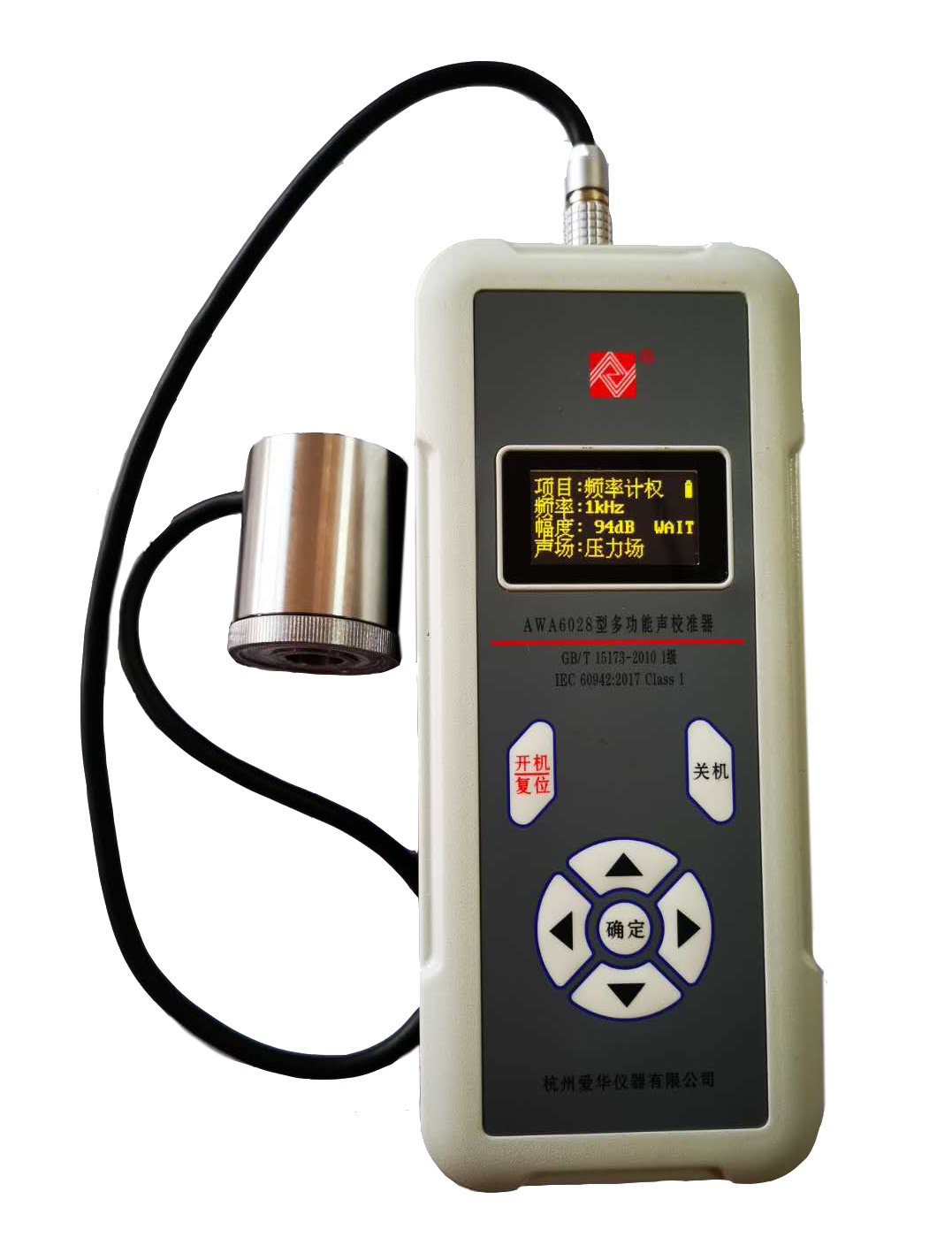 我公司最新研制成功AWA6028型多功能聲校準器不僅可以產生11個頻率的聲壓級,從31.5 Hz~16 kHz以倍頻程間隔,加上12.5 kHz,可在整個聲頻范圍對測試傳聲器、聲級計和其它聲學測量儀器進行聲校準,獲得聲和電的頻率計權和頻率響應,還可以對時間計權、級線性、猝發音響應和重復猝發音響應等進行檢定和校準,是一種用途廣泛的實驗室和現場聲學檢定校準裝置。